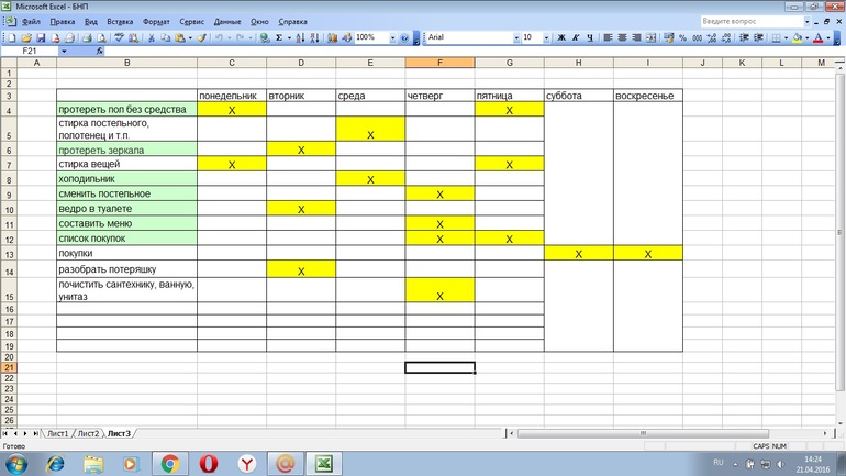 - Помыть пол 1 раз- Протереть зеркала 1 раз- Сменить постельное 1 раз- Ревизия в холодильнике 1 раз