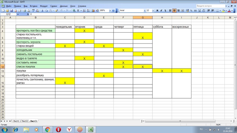Его я разделила на все 5 дней. Оказалось, что так удобнее. Подсказали мне также, как рациональнее использовать время, как лучше объединить. Наконец-то я добила эти пункты!!!