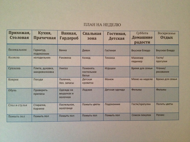 Вот мои дела по зонам, оно же по дням недели (можно и так, и так):