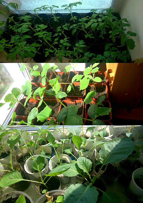 Потом мы с сыночком пообедали и занялись рассадой. Поливали, прищипывали.