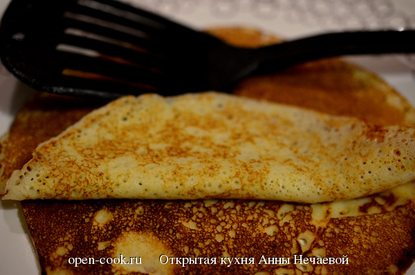 Из этого теста не получаются тончайшие и прозрачные блины, из него выходят чуть пышные, воздушные и очень нежные блинчики, с дырочками :)