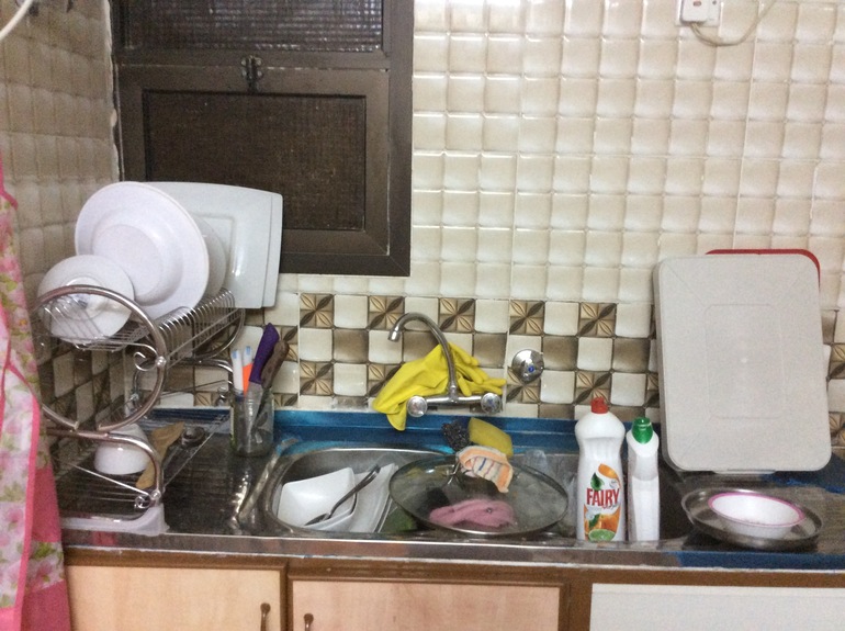 Под раковиной у меня был порядок. Так что я просто протерла полочку))