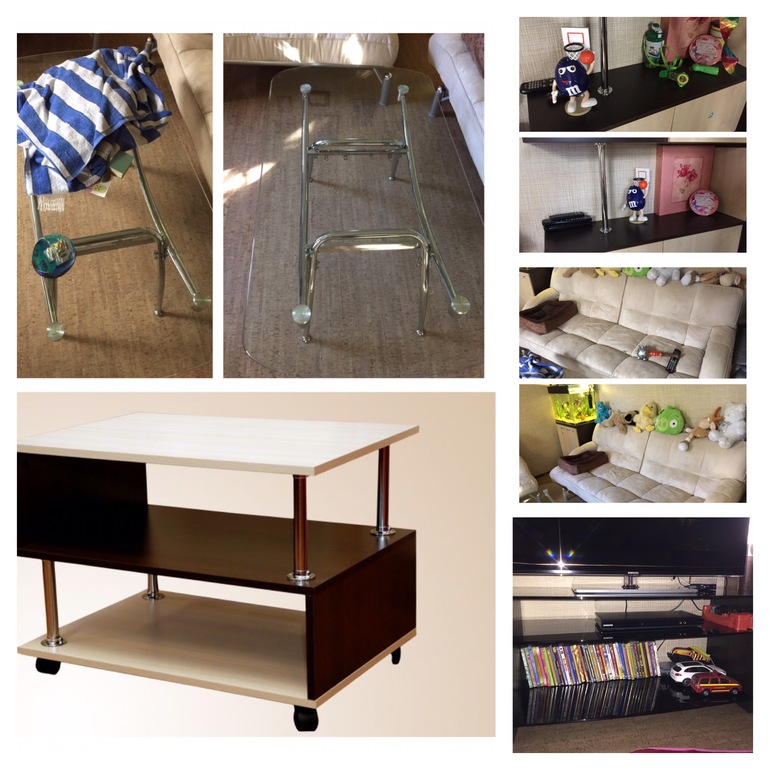 На сегодня ликвидироны три последние общедоступные ХС (не считая комнаты старшего😬): диван, столик и полка в гостиной. ТВ-тумба там же была "зачищена" сыном ещё в понедельник, поэтому фото ДО нет. В список "отдраить" был занесён диван - отмывается он достаточно легко, но также легко и быстро загаживается кошкой и средним. Типо журнальный столик...он стоит в очереди на расхламление (тяжёлый, зараза), если муж его на этой неделе не заберёт на работу, выкину😡 - с самого момента "вручения подарка" не лежит к нему душа. На его место давно хочу на колёсиках и раскладной может...на фотке визуализирую😂