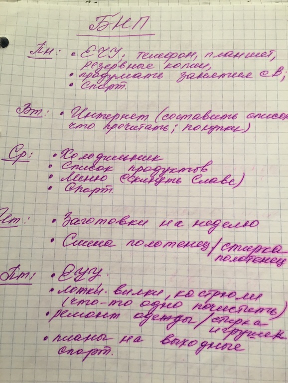 БНП у меня такой был ( фото) , его де и оставл, уже привыкла к нему. Даже когда " не в системе" по дням иногда делаю то, что в БНП написано;)
