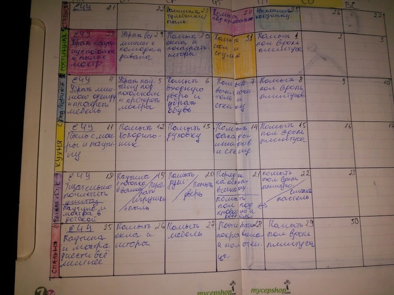 Хорошо. Что бы он не полетел, то записывай только то, что точно делаешь, а всё остальное по ходу. Я вот тоже могу запланировать перемыть все люстры в выходные. А муж придёт и скажет фиг! он работает и тому подобное. Лучше сделать что-то внепланово, чем грызть себя за то, что не сделала.