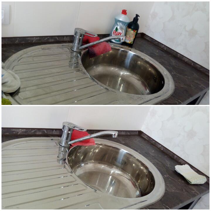 Отчитываемся по заданиямВмем привет. Привычка не запускать раковину сохранилась еще с моего первого взлета. Но насухо не вытирала. И выглядело все прилично. Но сейчас переехали в новый дом и вода у нас не центральная, а из своей скважины. И качество воды оставляет желать лучшего. Очень много железа. И каждая капля высыхая оставляет стойкий след. Потому стоит мне только двое сутлк не почистить раковину, как вид ее становится просто ужасным. Стараюсь чистить каждый день. А сегодня попробовала сухую тряпочку. И это очень спасает от разводов воды и высохших капель. В общем теперь рядом с раковиной поселилось маленько сухое полотенце. Ну и до и после