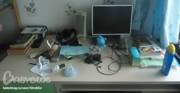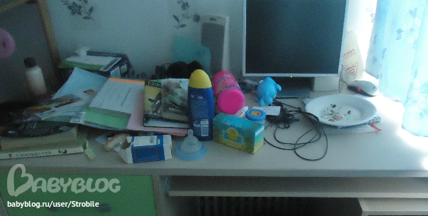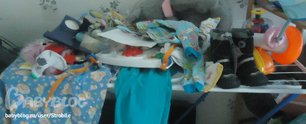 Здесь остались только детские игрушки, всякие бумажки, комп мышки и носки с слюнявчиками убрала
