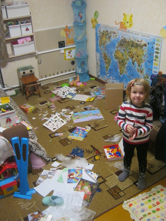 Эх, как можно содержать комнату в чистоте, когда два ребенка там хозяйничают. Вот пойду я на кухню на часик-полтора, прихожу а там приблизительно так: