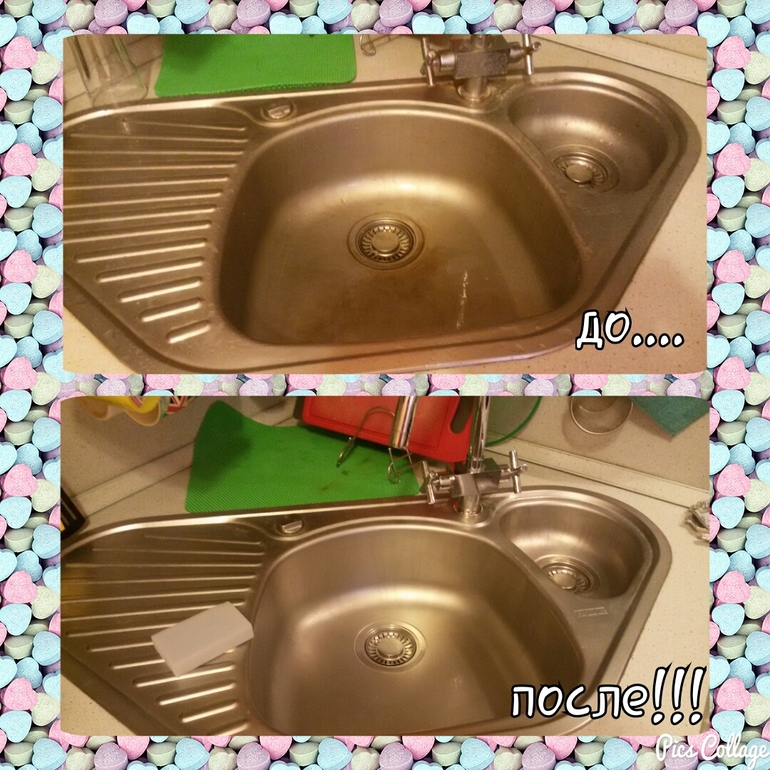 Начистить помогла по вашему совету белизна , а известковый налет и разводы от воды моя любимая меламиновая губочка. Обожаю ее с недавних пор. Моя помощница на фото с чистой раковиной.