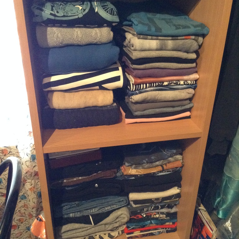 Про полки, у меня из серии, порядок в шкафу-порядок в голове. Поэтому выкидывать мне нечего. Фотки вот: