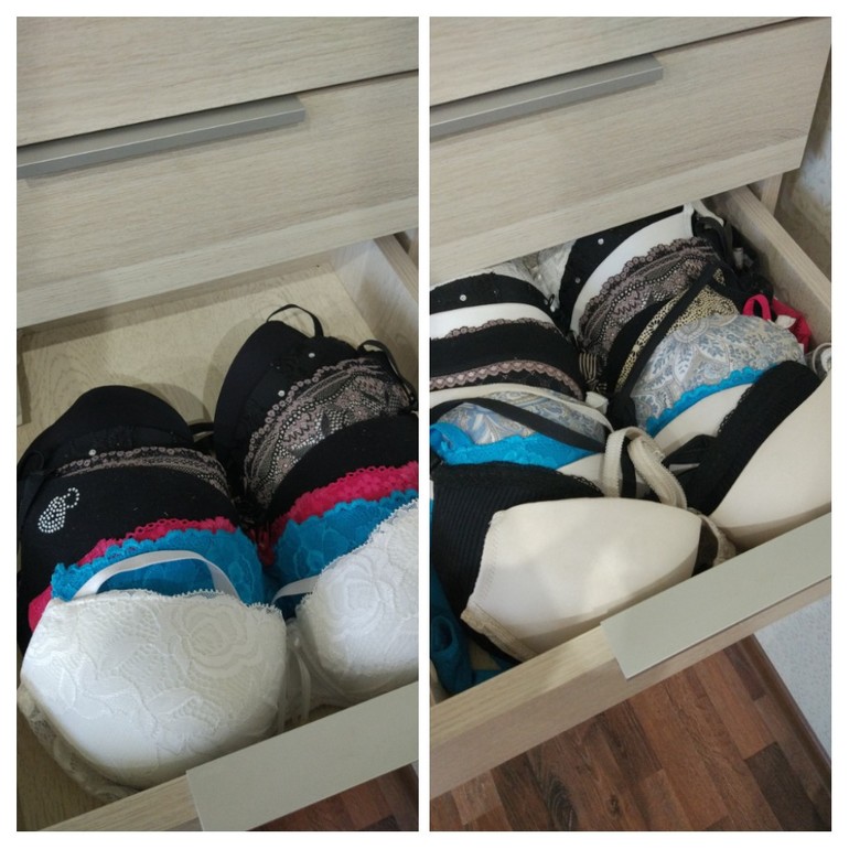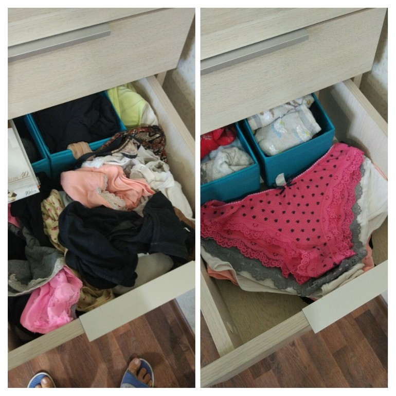 На счет разбора вещей. На это ушло у нас с дочей около 2 часов. Одно тянет за другое. Вообще у меня нет привычки накапливать хлам и я постоянно провожу ревизии. А вот переворачивать все в моих неудобных ящиках (о боже как мне хочется переехать и все разложить в гардеробной) это я могу!!! И еще сегодня я просто очень много всего отправила в стирку (особенно лифчики, которые однажды одела... и они лежат пыляться у меня в комоде).