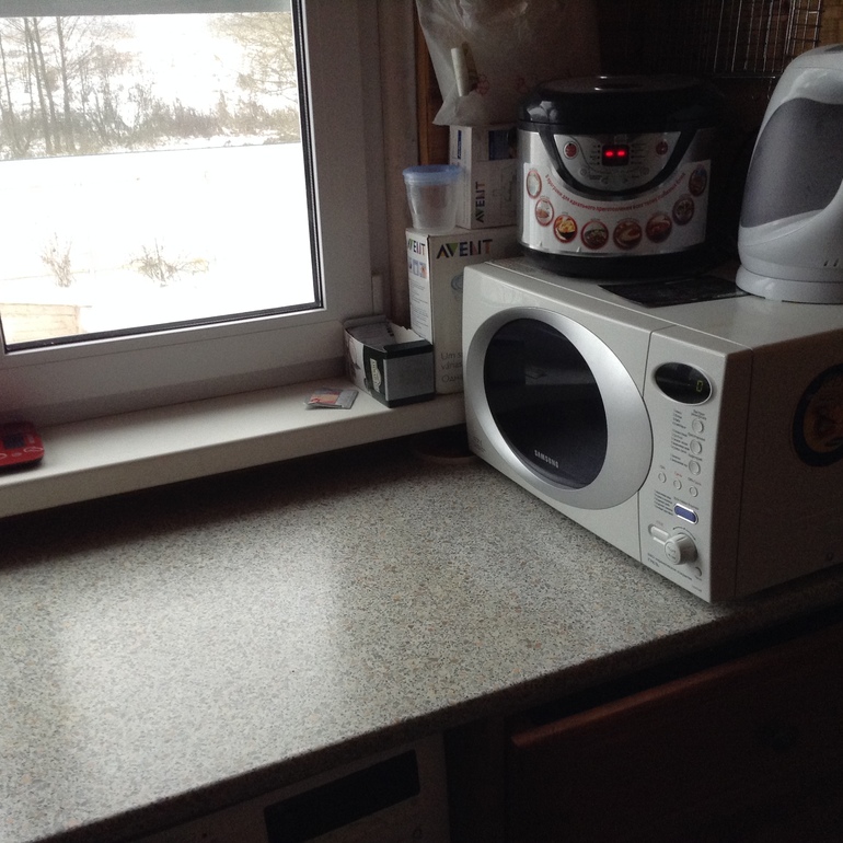 Бытовая техника достаётся по мере необходимости, исключение чайник и мультиварка, потому что постоянно используются.