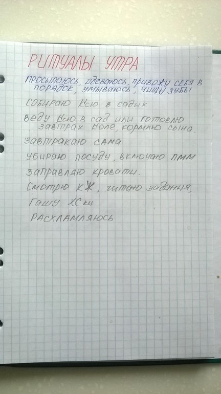 Итак утренние ритуалы. Дабы все не переписывать просто сфотографировала страницы КЖ