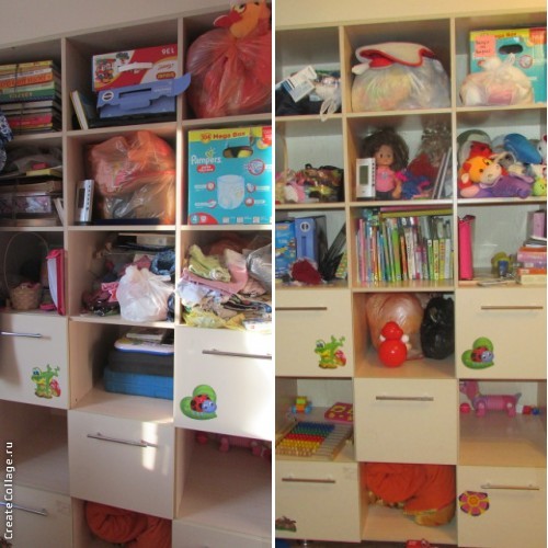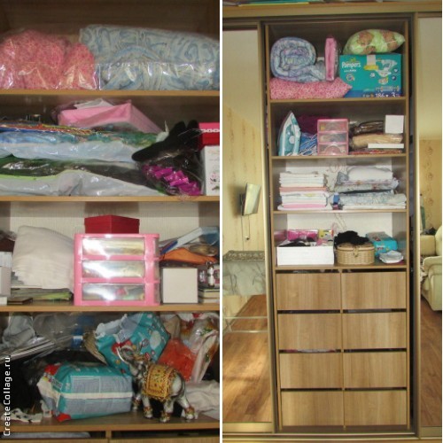 На разборку всех ХС у меня уходит 2 мин, привычка убирать все на место не дает им размножаться. На 5 мин залезла в большой детский шкаф и успела разобрать 2 пакета с игрушками, что то даже выкинула. А ведь я даже боялась к нему подойти, так было страшно.