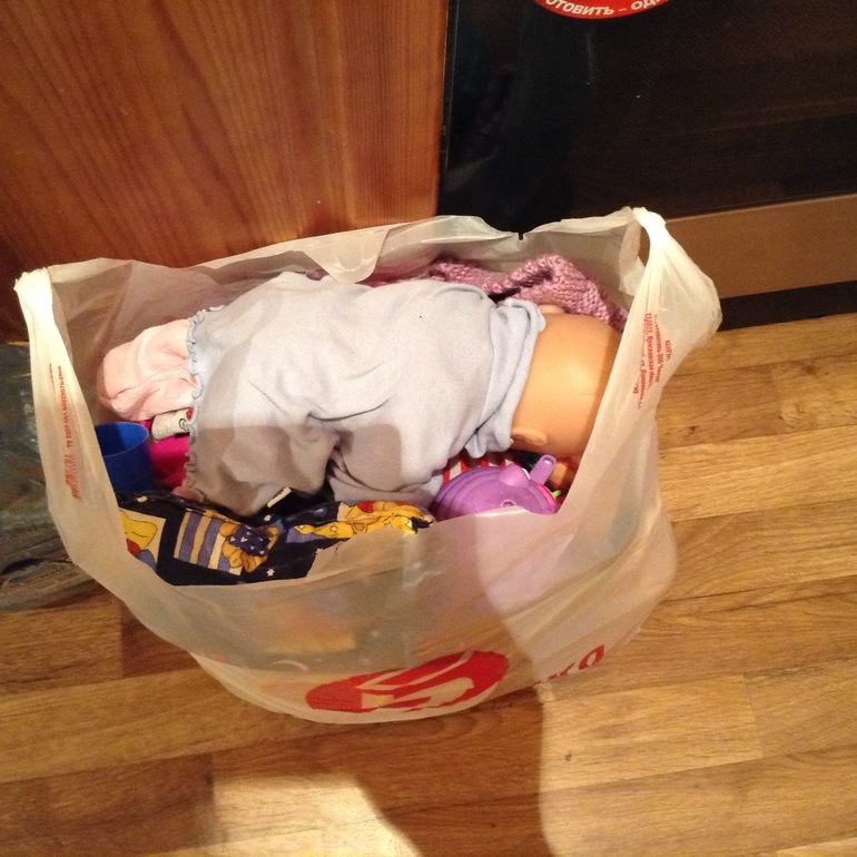 С детьми расхламляю часть игрушек. Выдвинули ящик и они выбрали по 27 игрушек, которые можно отдать. Собрали целый пакет в детский сад отнести