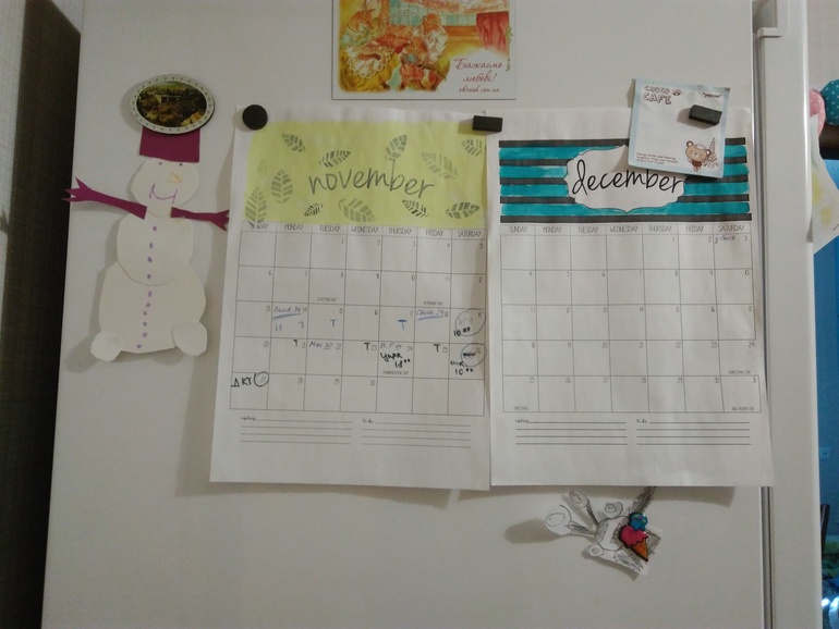 Распечатвааю и веду такой календарь уже несколько лет подряд. В начале года сразу заполняю др. потом вношу по мере поступления информации данные.