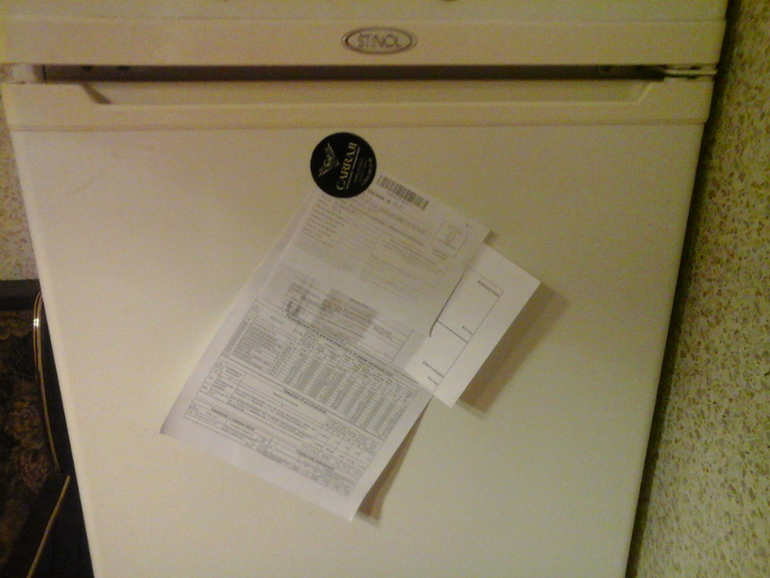 * На холодильнике весит список продуктов для покупки в магазине, висит квиточек на посылку и квитанция в садик))) все на одном магните)))