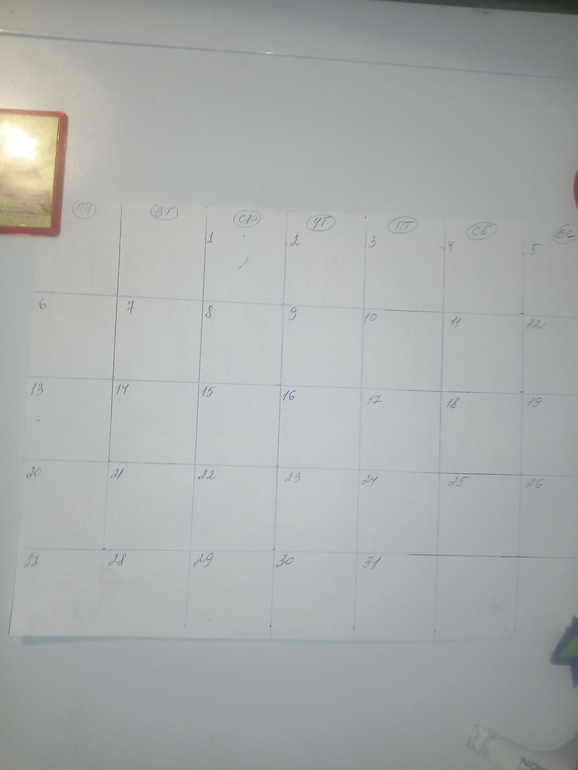 В продаже пока такой не нашла, и вообще никакого не нашла. Так же начертила по линейке ручкой квадраты и расписала по дням недели в уголках. Чего там еще выдумывать.)