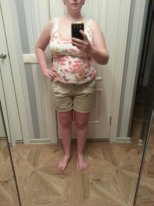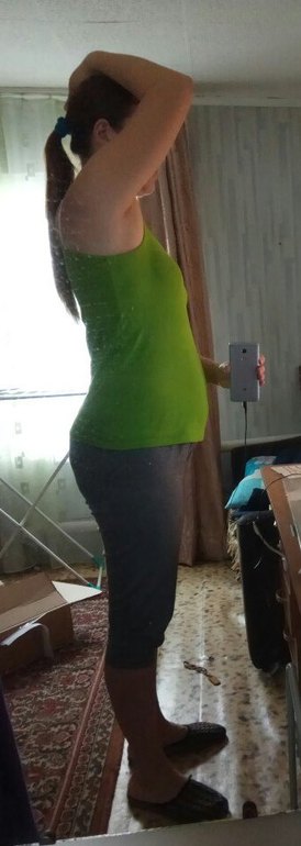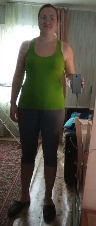 фотографировалась СПЕЦИАЛЬНО в этих вещах. Хочу к лету,чтобы шорты застегнулись, и живот "подобрался". Это и будет показателем изменений с моим телом. Хотелось бы , в идеале , вернутся к 55кг. но будем реалистами. Хорошо, если будет 60-62кг.