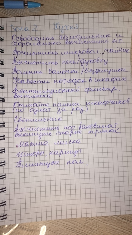 Это список работы на неделю, т.е. ежедневно тратим на дело 15-20 минут. Посмотрите внимательно - на холодильник могут уйти все 15 минут, но некоторые требуют намного меньше времени. Например, почистить вытяжку, микроволновку, чайник - это все не затратно по времени!