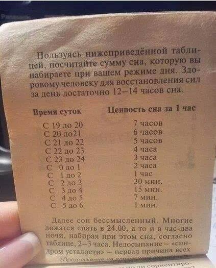 Переписала вот такую табличку часов. Буду стараться ложиться пораньше)