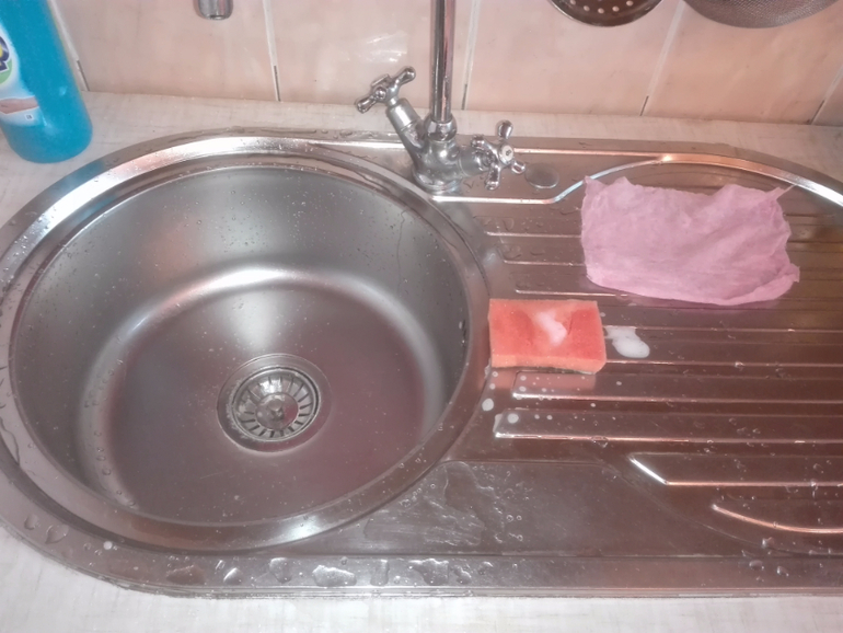 Отчитываемся по заданиямВчера волею судеб даже не попала домой - сломался замок, так что извините, отчитываюсь как только удалось войти. Моя семья на данный момент - это я и доченька (2 года), ну и, конечно, собака, которая наводит свои порядки) Живем в двухкомнатной квартире. Не работаю, но вожу ребенка ненадолго в сад в другом районе и жду ее там, так что полдня выпадает. Взлетала в марте, долетела, но дальше все постепенно становилось как и прежде, не хватает организованности, надеюсь закрепить привычки в этом взлете. Раковина с прошлого взлета у меня чистая практически всегда. разве что натереть для блеска можно. До: