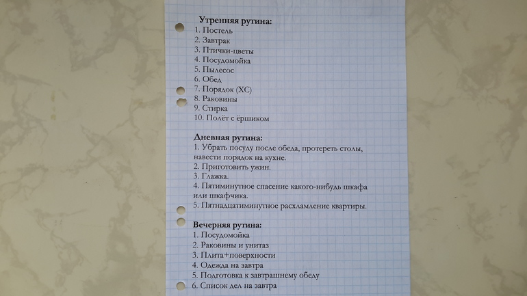 А зачем тебе два раза унитаз в день, утром и вечером? Посмотри внимательно - утром раковины, полёт с ершиком, вечером - раковины унитаз. Перегрузила список, и кухонных работ много написала. Вот и страшно смтреть на вечерние рутины!
