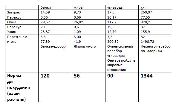 Белки надо 140 грамм, а у вас в меню получилось 76, чуть больше половины, надо дополнять (по объему мясные продукты 150-200 грамм на прием)