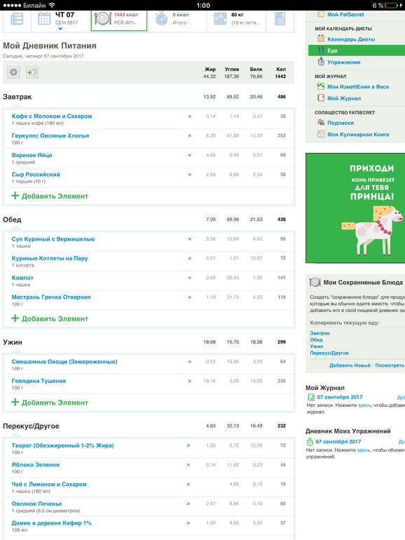 5. Рекомендуемые источники углеводов: гречка, бурый рис, геркулес, макароны из твердых сортов (не чаще 2 раз в неделю), чечевица, кускус, хлебцы зерновые, нут, фрукты до 200 грамм в день (лучше яблоки и грейпфрут) Как же рассчитать правильно и не запутаться. Можно использовать любое приложение для подсчета КБЖУ (например : Fat Secret )