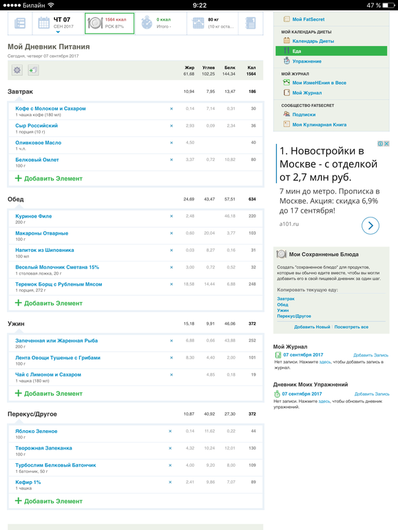 белки 49.5 - очень мало на обед надо добавлять белков, они помогают снижать вес