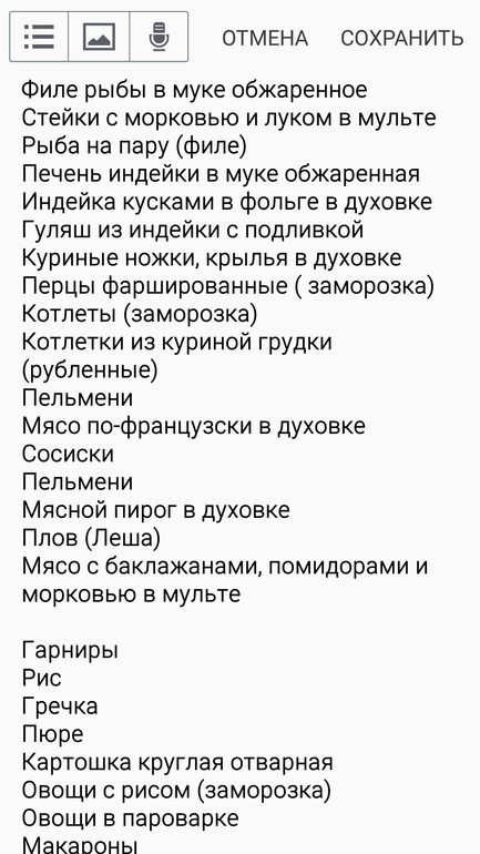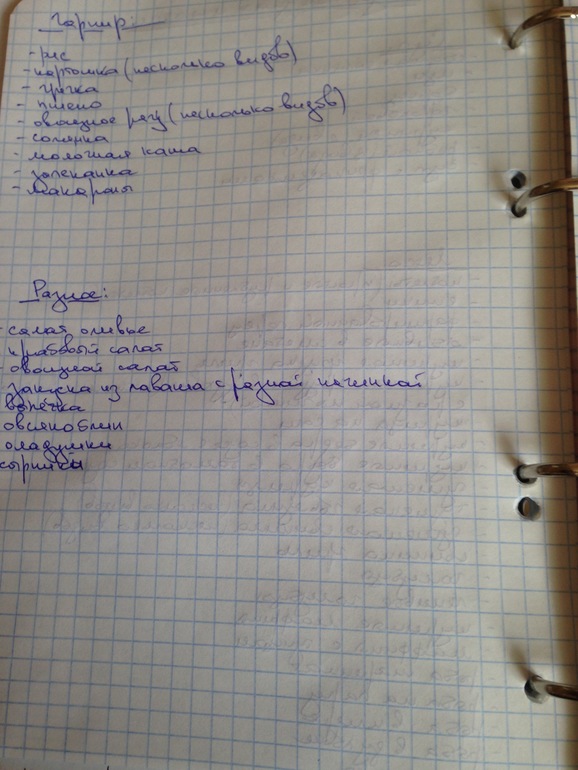 Список составила,стараюсь планировать меню на неделю,иногда не получается((