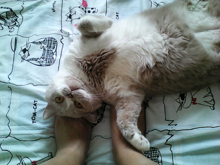 Вообще этого "главного поставщика королевского двора по шерсти" надо вычесывать, завели на свою голову интерьерного бегемота, но еще не вошло в привычку. Пылесошу (пол) в основном. И липкие ролики из икеи, если он решит из моих джинс сделать рейтузы с начесом. Остальные двое линяют не так обильно), к счастью.