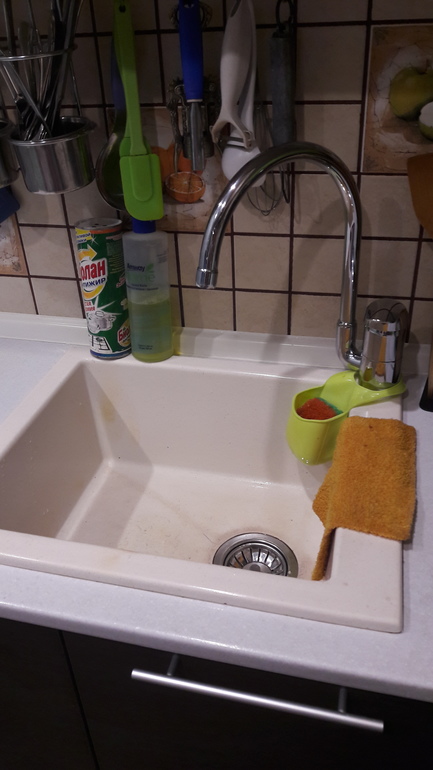 Тазик для посуды 100% не приживется у нас. Вообщем помыла я посуду, залила раковину горячей водой и моющим, пока она так стояла быстренько замесила пирог, отправила его в духовку и начала отмывать. Вот что из этого получилось
