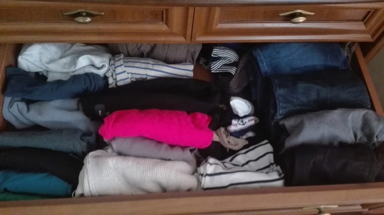 На вьіброс тоже ничего нет по зтой же причине. Белье сразу вьібрасьіваю, если теряет вид. Дома халатьі не ношу, в них и не удобно. Есть один, висит на вешалке в душе. Одежда для дома в хорошем состоянии.