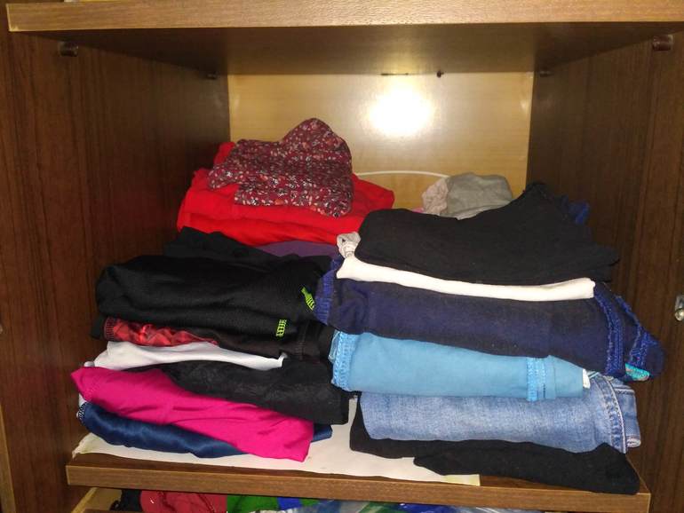 .Куча не нужных вещей, то что порвалось, заносилось, либо лежит мертвым грузом - не носим.