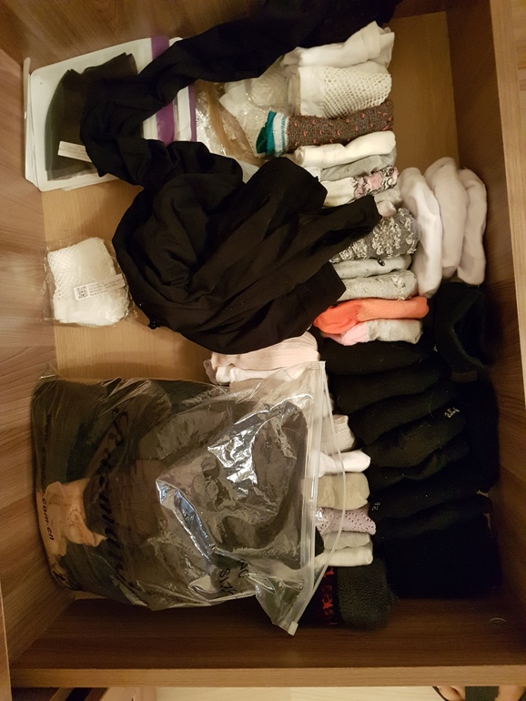 Выбрасывать нечего. Честно. Только старые носки мужа собрала в мешок. Вещей очень мало-не люблю лишние тряпки) всегда избавляюсь-отдаю/продаю. Шуба норковая никому не нужна? ))))))