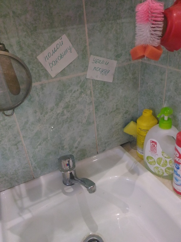 Думаю, что для нас актуальны эти надписи. Как ни странно и муж, и сын вдохновились идеей (я им объяснила) и стараются соблюдать порядок. По крайней мере, моют за собой и не составляют посуду в раковину. Ну, конечно, протираю мойку за ними я. Но и этому я очень рада!