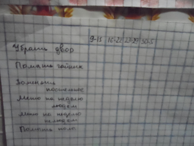 Ну и сразу повесила ежеднельные дела.Буду дополнять. А то на прошом взлете висело, напоминало, а как переехала - забыла все.