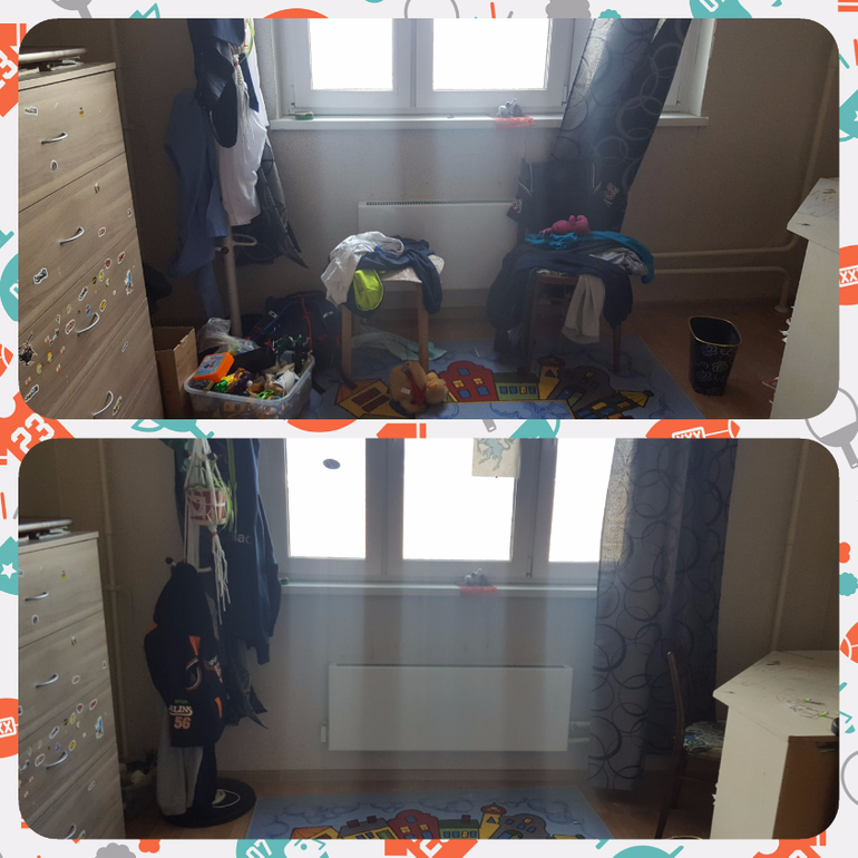 Отчитываемся по заданиямРебенок вдохновился моими набегами на хот-споты и сегодня с огромным удовольствием посоревновался со мной в расхламлении.15 минут ему хватило,а мне чуть дольше, буквально на минутку больше. Правда у него задача мне кажется была по сложнее:)))он убирал угол своей комнаты:)))Я когда на него смотрела(на угол,в смысле) ПЛАКАЛА, от осознания сколько сил мне придется вложить в его "расхламление". Но тут дитя меня просто спас!
