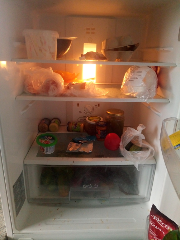 Потом перешла к холодильнику, тут у нас конечно.... Мышь повесилась
