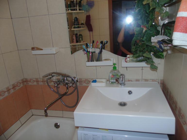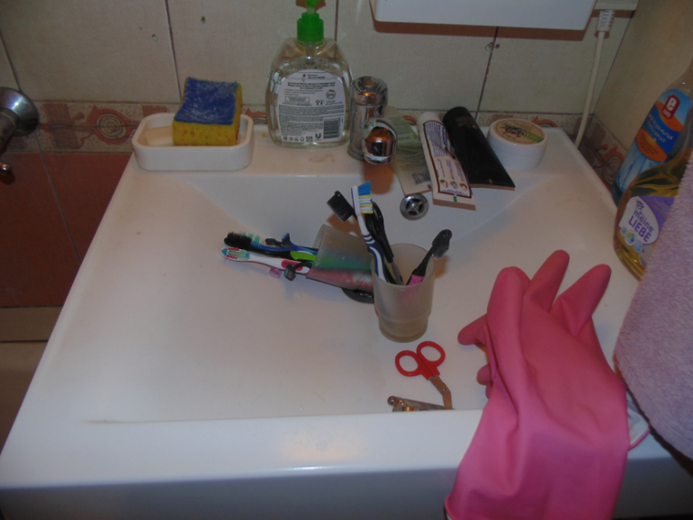 А в ванной моют лапы псу после прогулки. Когда взяли щенка, обещали, что будут мыть ванну с порошком каждый раз. Но теперь даже не споласкивают грязь душем.