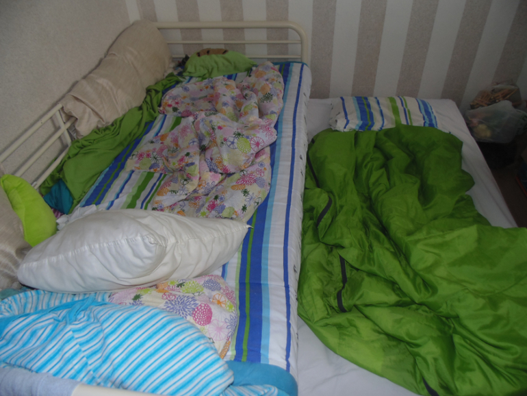 Отчитываемся по заданиямПошли сложные задания. Я та еще соня, могу и днем забраться под одеяло, особенно когда за окном холодно. Сплю в спальном мешке. Сегодня уезжала на весь день, так что заправила кровать (как смогла =).