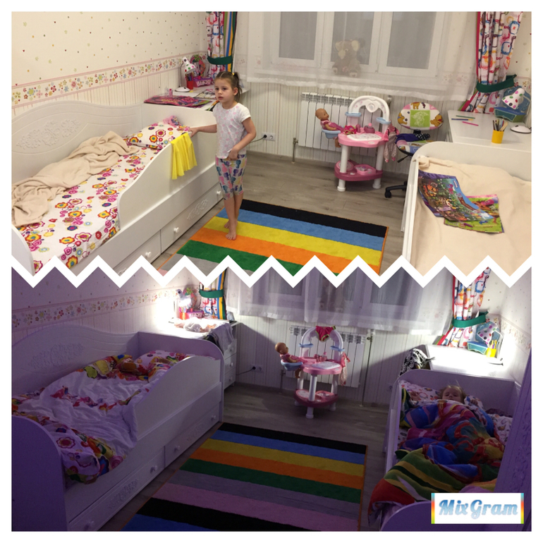 Время близиться к 7.00 и это значит, что пора идти будить пупсиков. Дело это очень тонкое и шепитильное, ибо младшая страшна в гневе с утра. У неё никогда не бывает настроения если её разбудить рано утром, это досталось от меня))