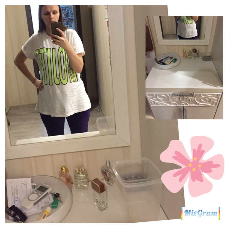 Переоделась в домашнее, подошла к зеркалу в коридоре чтоб сфоткаться и сразу погасила ХС. И ещё один пока переодевалась за своим благоверным убрала. Оставить там свои шмотки это святое!