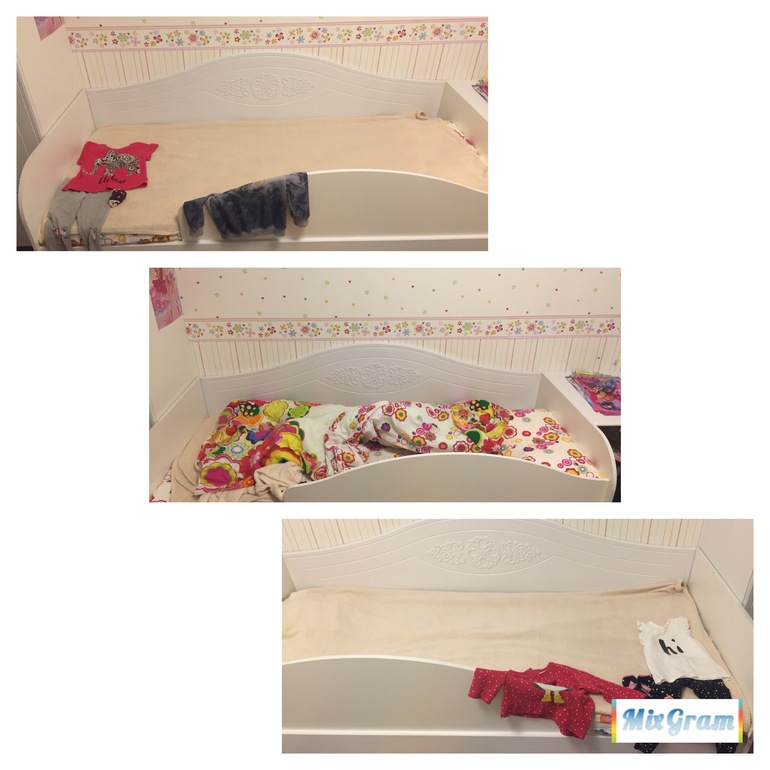 Но сегодня день задался, так как вечером первая тренировка по хореографии в садике. К тому же она вспомнила, что вчера мы ей купили чешки и от Майи достался спортивный купальник. Настроение однозначно на высоте! Идём с детьми завтракать, Папа наш ещё лежит в ванной. В холодное время года он может проснуться только благодаря этому ритуалу, для меня непонятному)) я заканчиваю завтрак самая первая и иду заправлять детские кровати, в это время меня сменяет наш папа. Не люблю когда кто-то ест в одиночестве. Сразу замечу, что по выходным или в свободное от Садика утро девочки сами заправляют постель. Но когда мы идём в сад я предпочитаю делать это сама, получается хорошая экономия времени. Сразу кладу им одежду, в которой они сегодня пойдут.