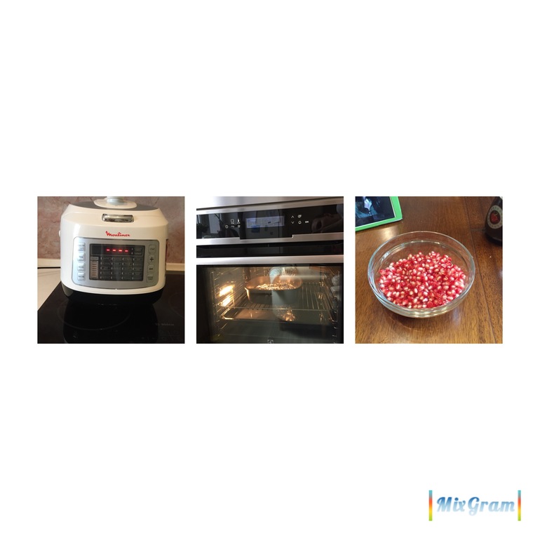 Пришла логопед и пока они занимаются я готовлю обед. Мультиварка тушит капусту, в духовке запекаются крылышки и ещё я детям гранат почистить обещала.