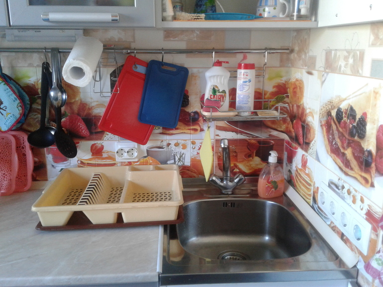 Быстренько помчалась по игрушкам, посуду убрать. Раковина.