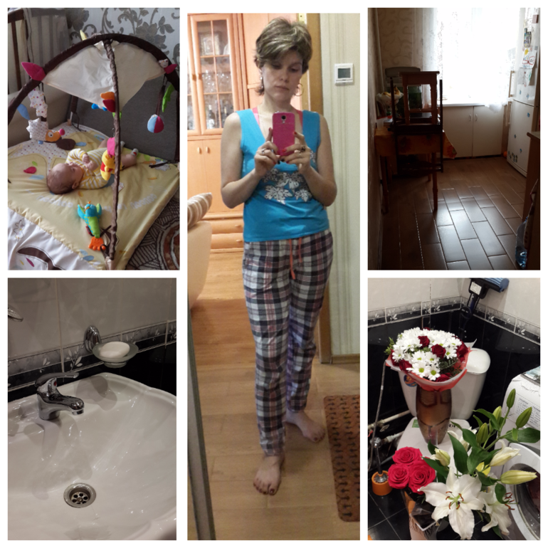 Дальше у нас почти два часа перекусов 0 обнимашек - целовашек с Зайкой))) Правда, сразу после перекуса Аришы - пока она еще настроена полежать я ставлю таймер на 15 минут и быстренько пылесошу- протираю пол и лечууус ершиком. (обычно это у меня вместо мытья окон)))А, забыла- я же как пришла - и сразу красивая))) В субботу была днюха - стоят цвты - притащила еще обрезать стебли и поменять воду - но таймер пропищал - так и бросила их там на время))