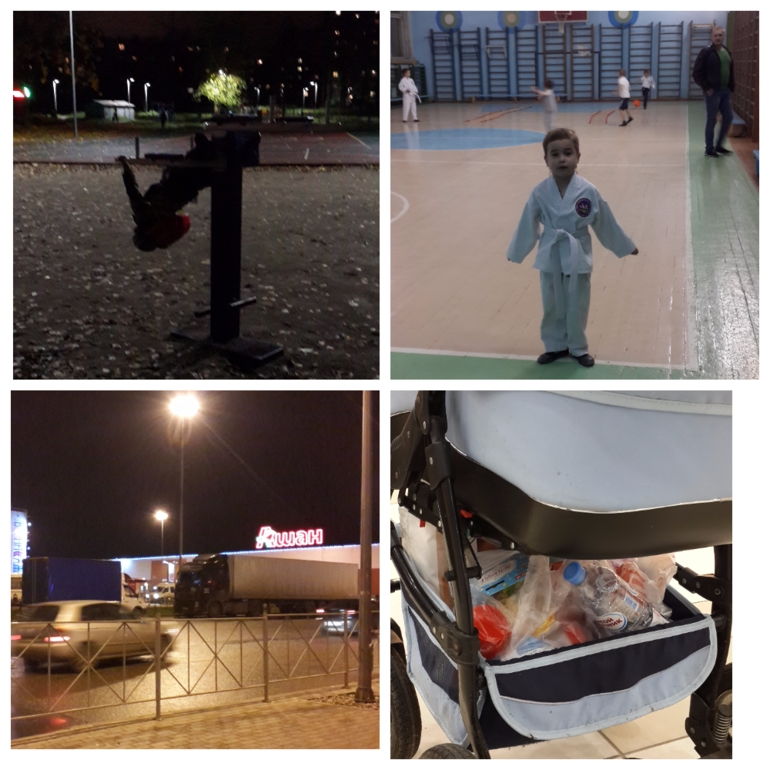 После массажа опять перекус - и в садик к 6. После сада через площадку к 7 часам мы идем на тхэквондо. Он у нас 3 раза в неделю - понедельник, среда, пятница. Четверг, воскременье - тот же график, только на английский идем.. Пока Илюша на секции, мама руки в ноги и бежать в торговый центр в Ашан - 15 минут туда, 15 минут обратно - 30 минут на покупки. Закончились подгузники - хочешь не хочешь - надо идти...