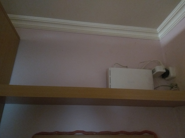 Кстати, вдруг кому-то пригодится моя идея. Когда я переехала в эту квартиру меня сильно раздражало это великолепие под потолком, торчащее из стены - провода и белая хрень для интернета.